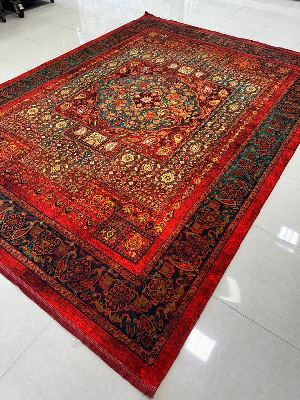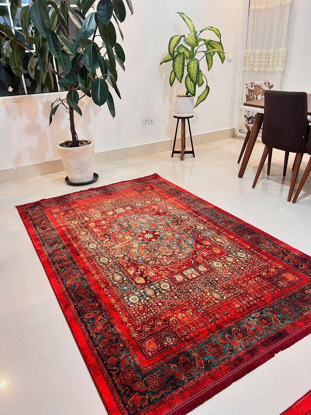 فرش ۱۲۰۰ شانه هلنا لاکی کف ساده و معادل ۷۷ رج دستبافت